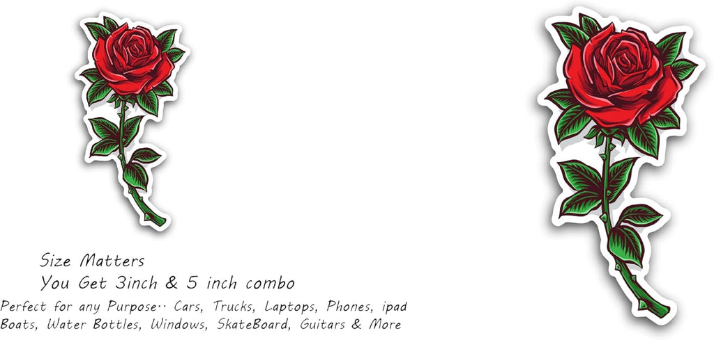 2 (Pieces) 3" and 5" Rose Design Sticker, Waterproof Vinyl Decals for Many Purpose Like Cars, Trucks, Laptops, Phones, Windows and More