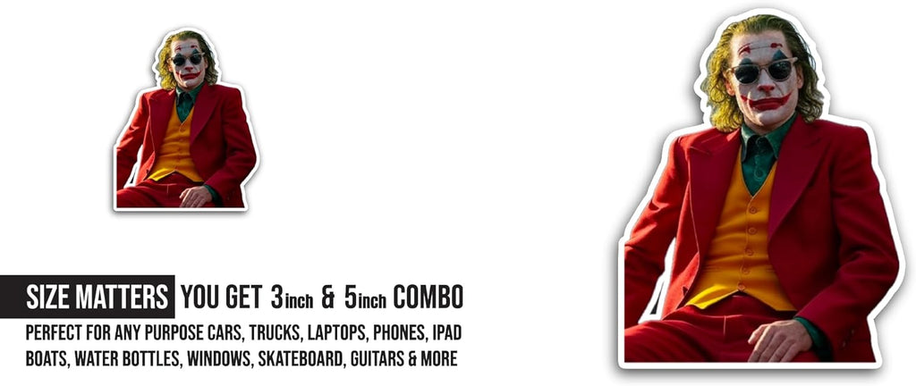 2 (Pieces) 3" and 5" Joker Art Sticker, Waterproof Vinyl Decals for Many Purpose Like Cars, Trucks, Laptops, Phones, Windows and More