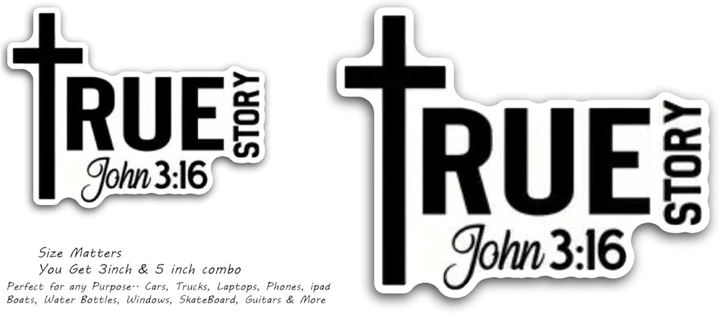 2 (Pieces) 3" and 5" True Story John 3:16 Decal Sticker, Waterproof Vinyl Decals for Many Purpose Like Cars, Trucks, Laptops, Phones, Windows and More