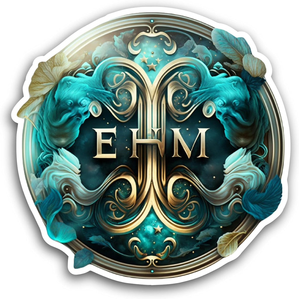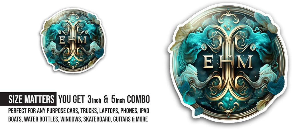 2 (Pieces) 3" and 5" A Gold and Blue Circle Sticker, Waterproof Vinyl Decals for Many Purpose Like Cars, Trucks, Laptops, Phones, Windows and More