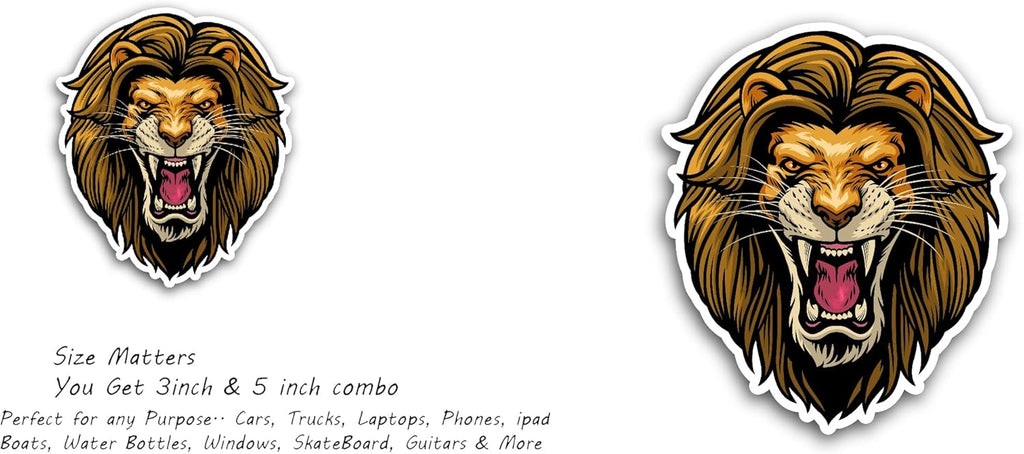 2 (Pieces) 3" and 5" Lion Face Sticker, Waterproof Vinyl Decals for Many Purpose Like Cars, Trucks, Laptops, Phones, Windows and More