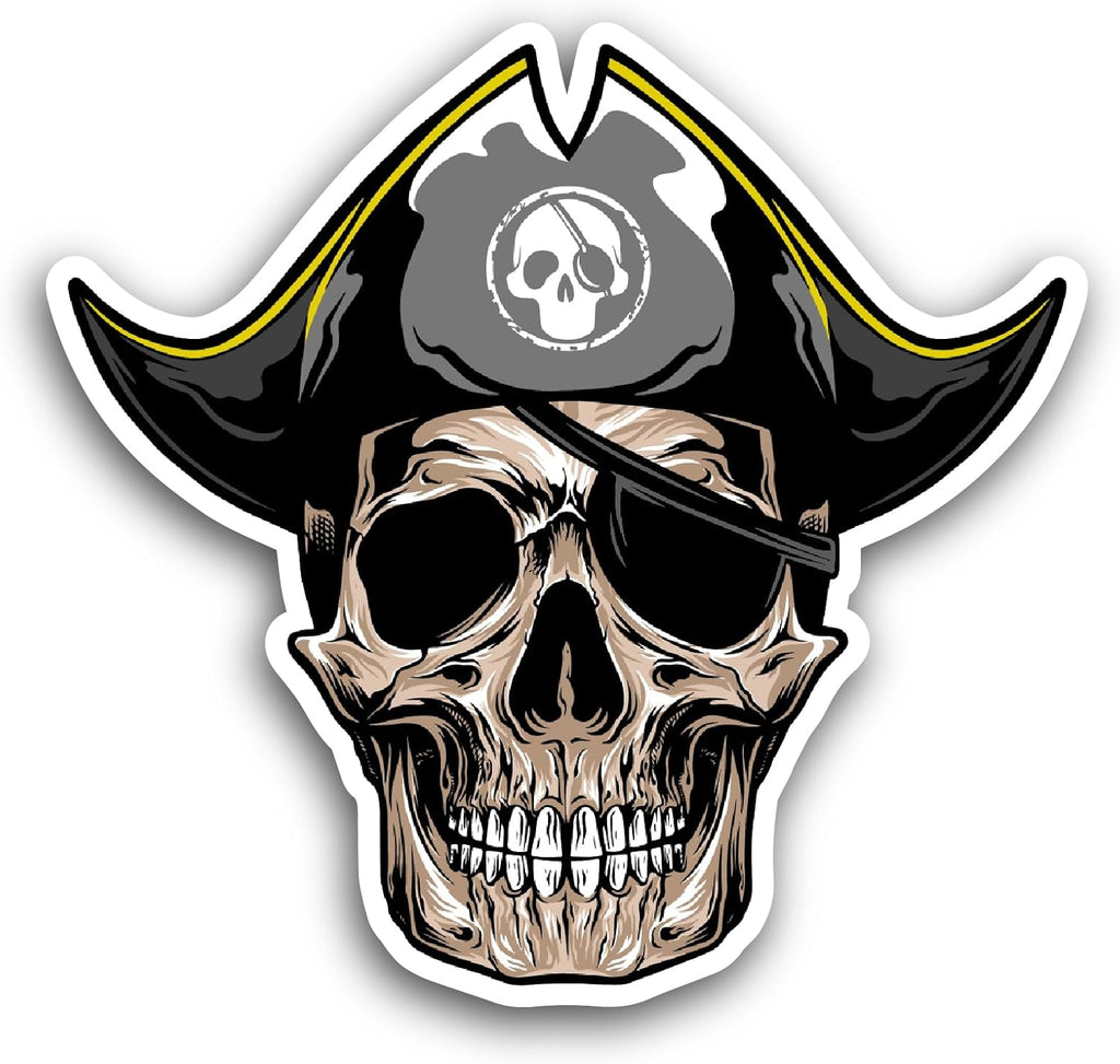 2 (Pieces) 3" and 5" Skull Pirate with Black Cap Sticker, Waterproof Vinyl Decals for Many Purpose Like Cars, Trucks, Laptops, Phones, Windows and More