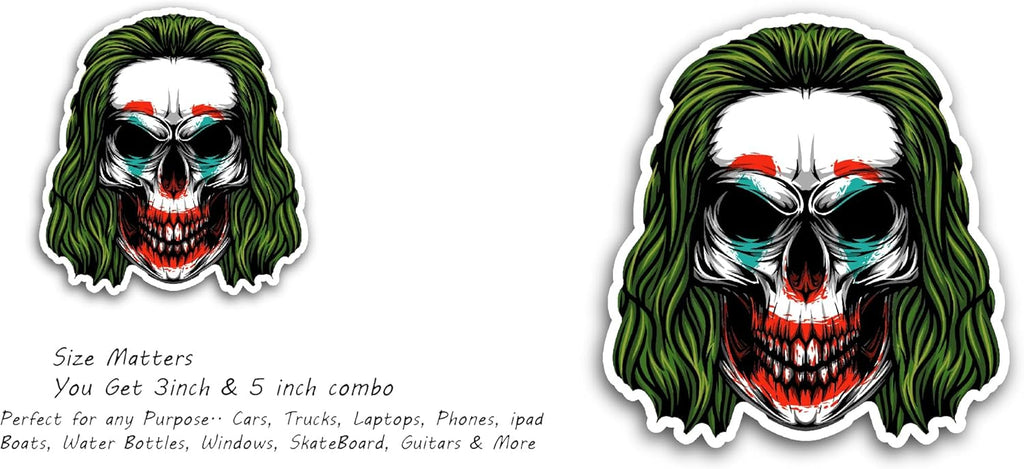 2 (Pieces) 3" and 5" Evil Joker Sticker, Waterproof Vinyl Decals for Many Purpose Like Cars, Trucks, Laptops, Phones, Windows and More