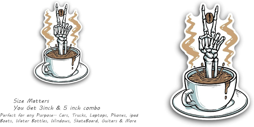 2 (Pieces) 3" and 5" Coffee and Hand Skelton Sticker, Waterproof Vinyl Decals for Many Purpose Like Cars, Trucks, Laptops, Phones, Windows and More