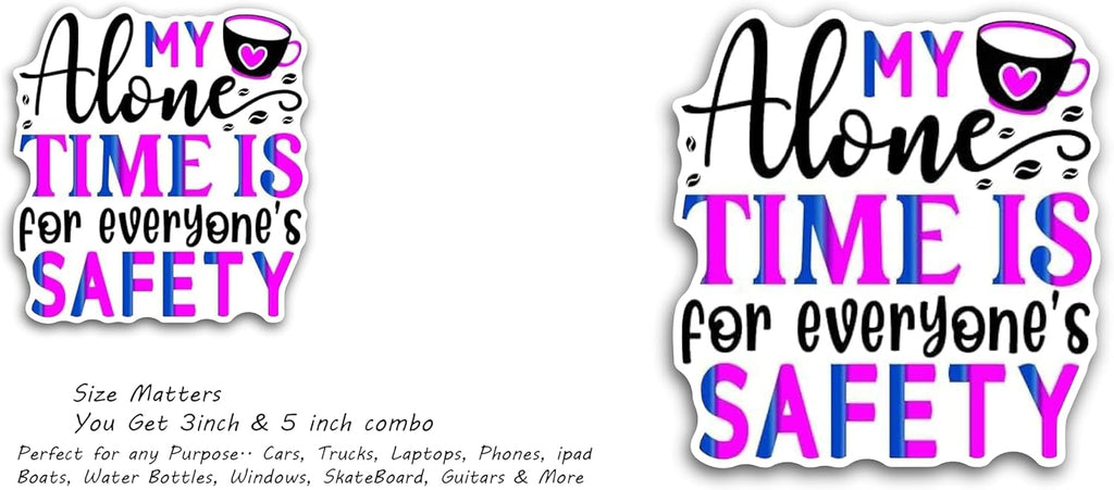 2 (Pieces) 3" and 5" My Alone time is for Everyones Safety Decal Sticker, Waterproof Vinyl Decals for Many Purpose Like Cars, Trucks, Laptops, Phones, Windows and More