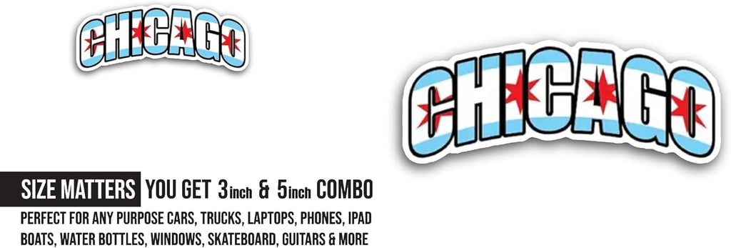 2 (Pieces) 3" and 5" Chicago Sticker, Waterproof Vinyl Decals for Many Purpose Like Cars, Trucks, Laptops, Phones, Windows and More