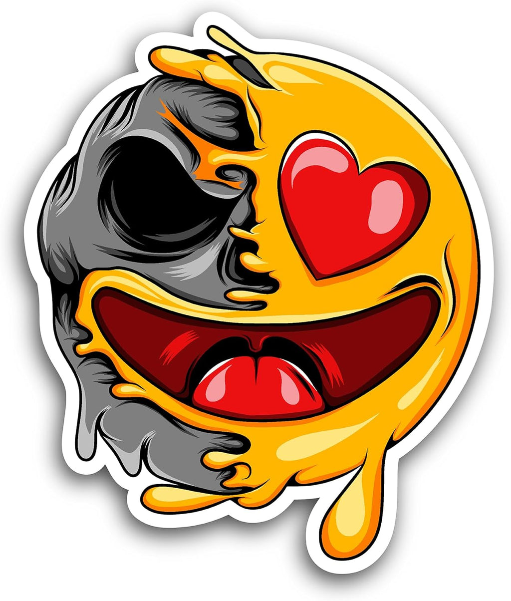 2 (Pieces) 3" and 5" Smiley Skull Sticker, Waterproof Vinyl Decals for Many Purpose Like Cars, Trucks, Laptops, Phones, Windows and More