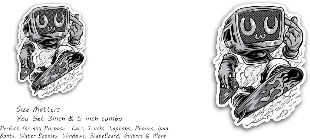 2 (Pieces) 3" and 5" Cartoon Sticker, Waterproof Vinyl Decals for Many Purpose Like Cars, Trucks, Laptops, Phones, Windows and More