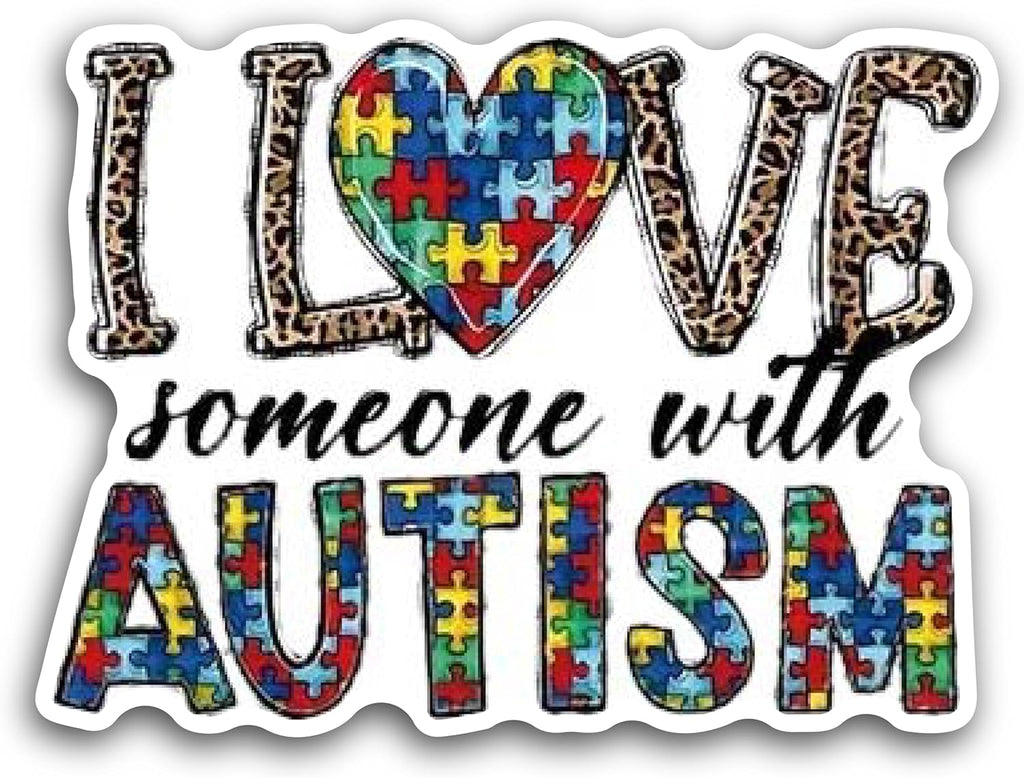 2 (Pieces) 3" and 5" I Love Someone with Autism Decal Sticker, Waterproof Vinyl Decals for Many Purpose Like Cars, Trucks, Laptops, Phones, Windows and More