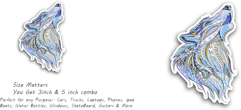 2 (Pieces) 3" and 5" Wooden Wolf Sticker, Waterproof Vinyl Decals for Many Purpose Like Cars, Trucks, Laptops, Phones, Windows and More