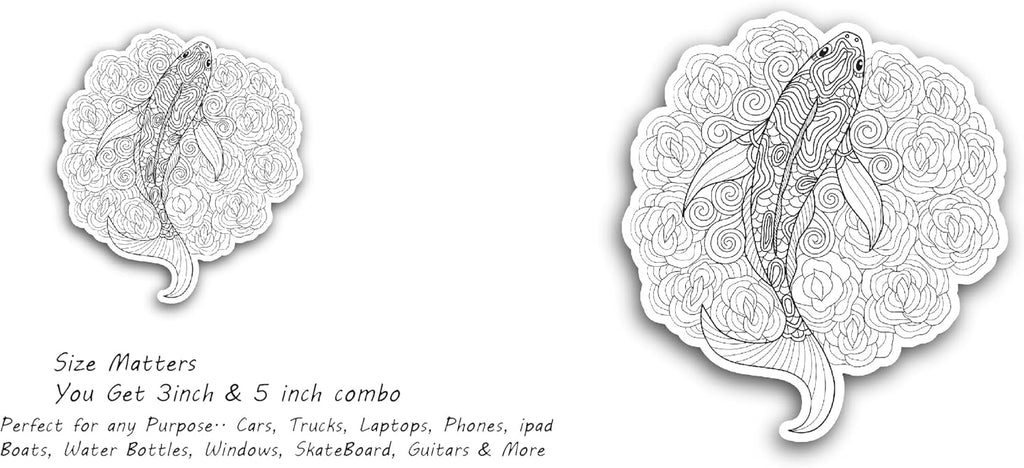 2 (Pieces) 3" and 5" Fish Vector Art Sticker, Waterproof Vinyl Decals for Many Purpose Like Cars, Trucks, Laptops, Phones, Windows and More