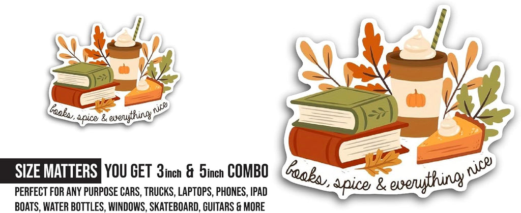2 (Pieces) 3" and 5" Books, Spice & Everything Nice Sticker, Waterproof Vinyl Decals for Many Purpose Like Cars, Trucks, Laptops, Phones, Windows and More