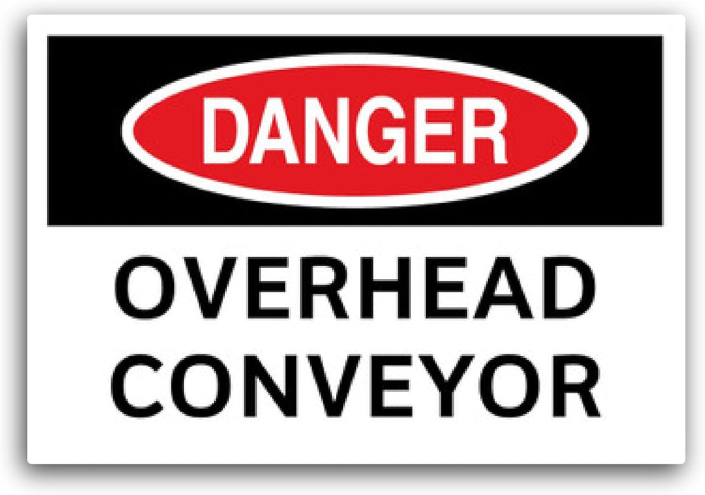 2 (Pieces) 3" and 5" Danger - Overhead Conveyor Sign Sticker, Waterproof Vinyl Decals for Many Purpose Like Cars, Trucks, Laptops, Phones, Windows...