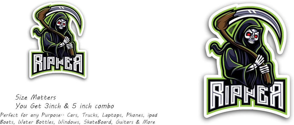 2 (Pieces) 3" and 5" Skull Ripper Sticker, Waterproof Vinyl Decals for Many Purpose Like Cars, Trucks, Laptops, Phones, Windows and More