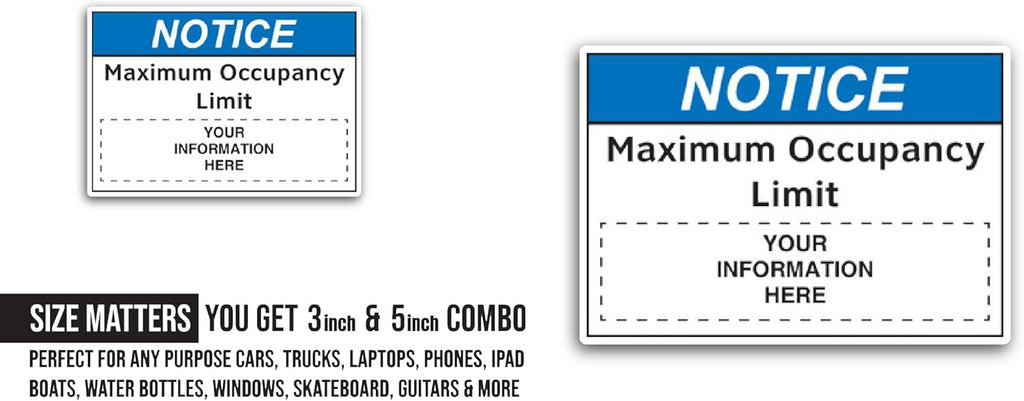 2 (Pieces) 3" and 5" Maximum Occupancy Sticker, Waterproof Vinyl Decals for Many Purpose Like Cars, Trucks, Laptops, Phones, Windows and More