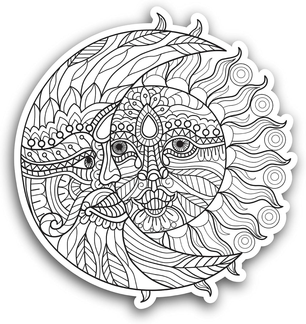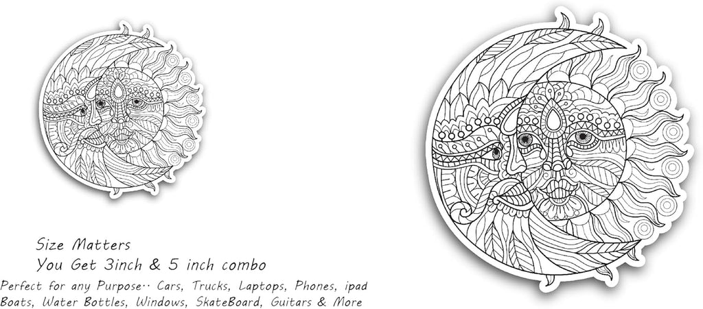 2 (Pieces) 3" and 5" Sun & Moon Vinyl Decals Sticker, Waterproof Vinyl Decals for Many Purpose Like Cars, Trucks, Laptops, Phones, Windows and More