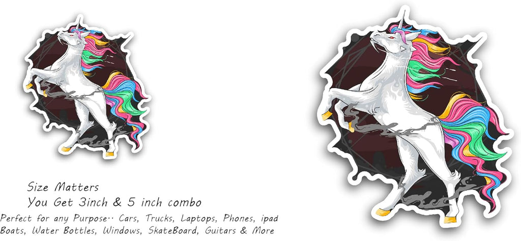 2 (Pieces) 3" and 5" Colorful Unicorn Sticker, Waterproof Vinyl Decals for Many Purpose Like Cars, Trucks, Laptops, Phones, Windows and More