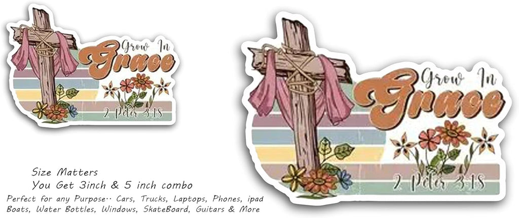 2 (Pieces) 3" and 5" Grow in Grace Message Next to Cross Decal Sticker, Waterproof Vinyl Decals for Many Purpose Like Cars, Trucks, Laptops, Phones, Windows and More