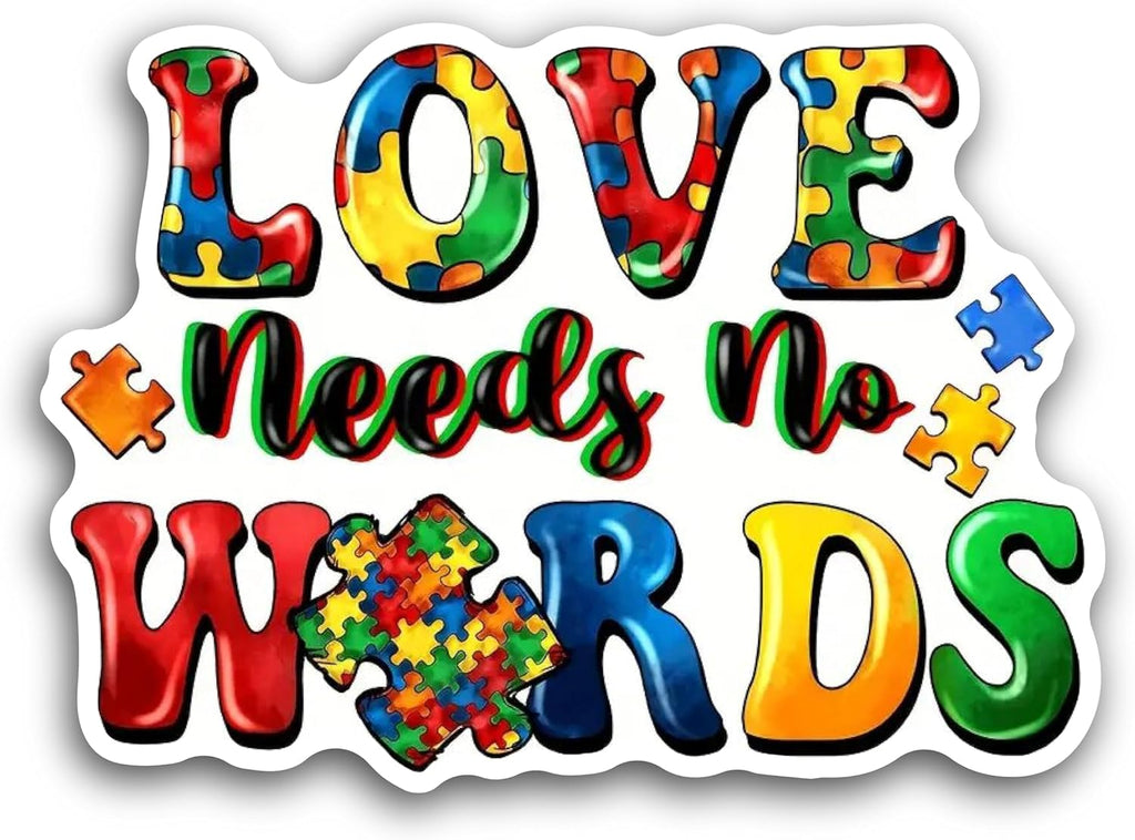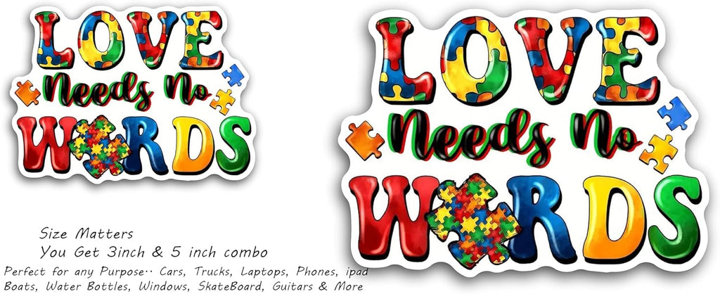 2 (Pieces) 3" and 5" Love Needs no Words Decal Sticker, Waterproof Vinyl Decals for Many Purpose Like Cars, Trucks, Laptops, Phones, Windows and More