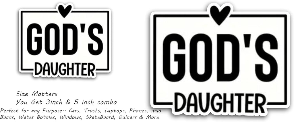 2 (Pieces) 3" and 5" God's Daughter Decal Sticker, Waterproof Vinyl Decals for Many Purpose Like Cars, Trucks, Laptops, Phones, Windows and More