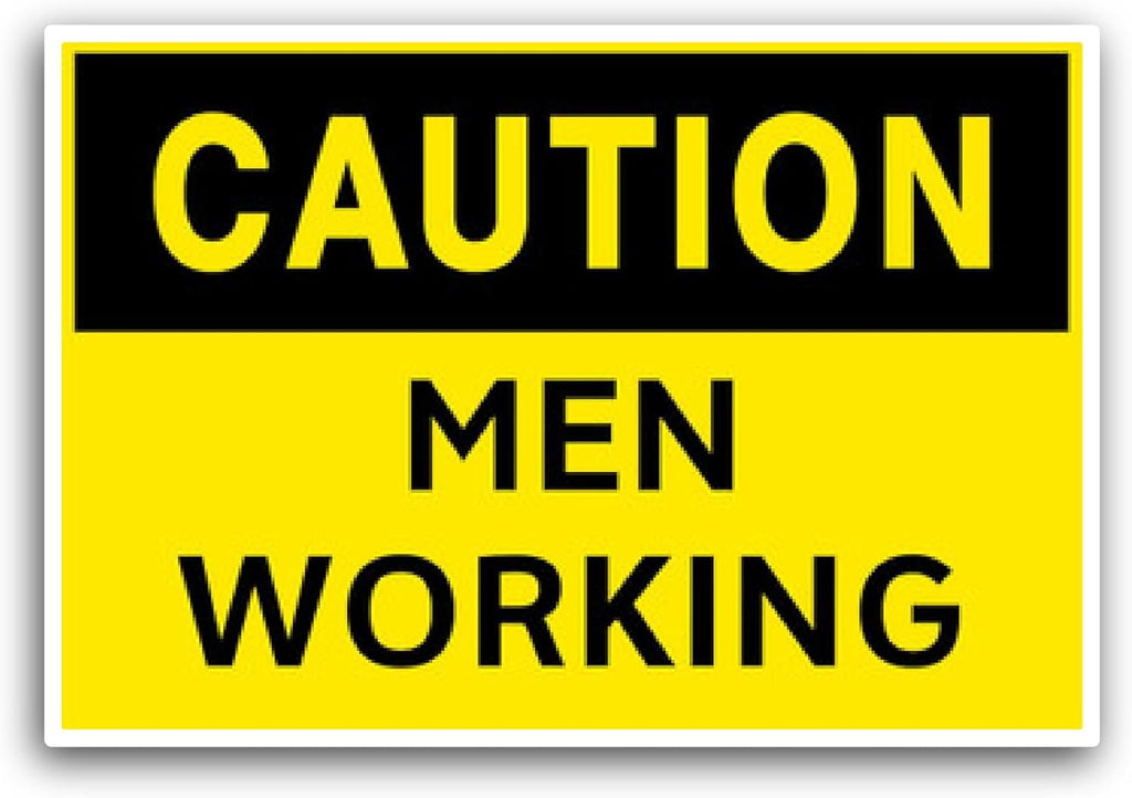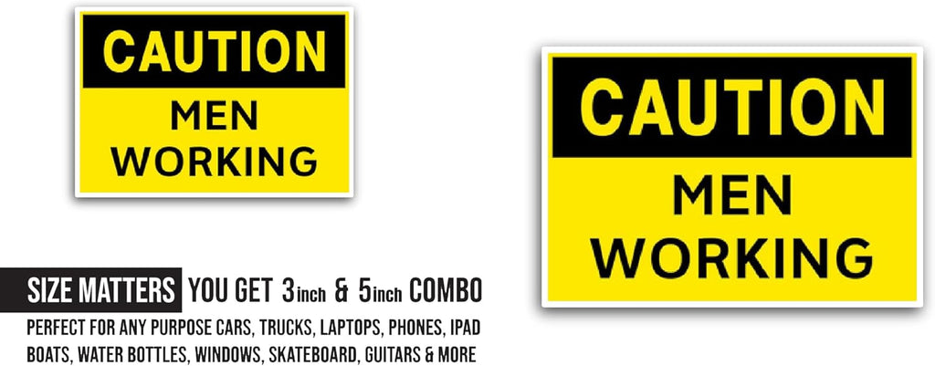 2 (Pieces) 3" and 5" Caution: Men Working Sticker, Waterproof Vinyl Decals for Many Purpose Like Cars, Trucks, Laptops, Phones, Windows and More