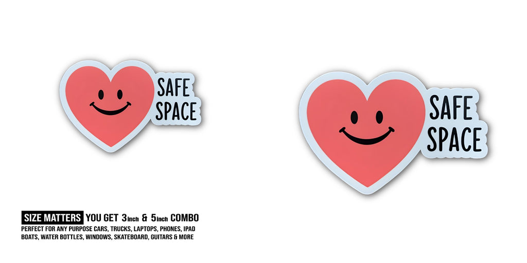 2 (Pieces) 3" and 5" SAFE SPACE Cute Heart Sticker, Waterproof Vinyl Decals for Many Purpose Like Cars, Trucks, Laptops, Phones, Windows and More