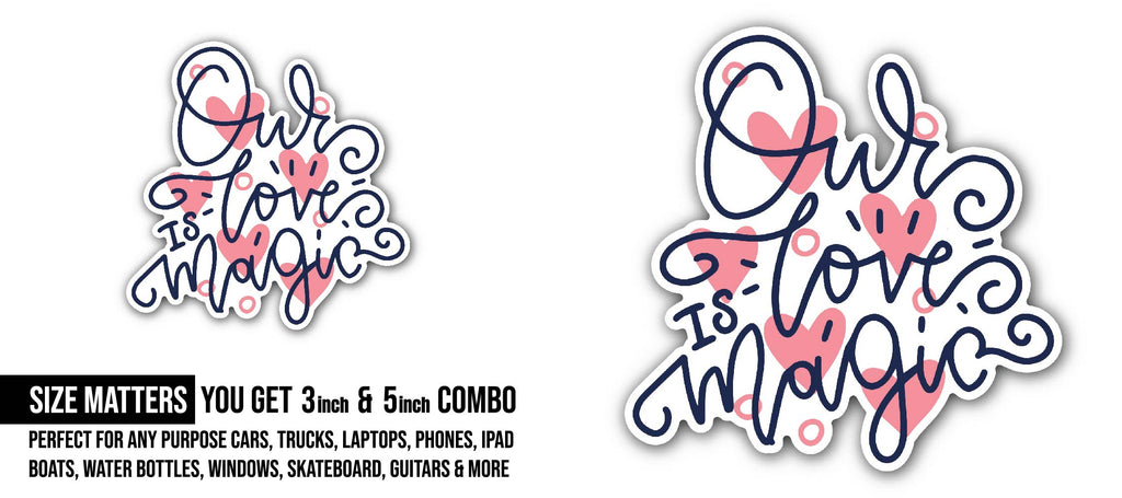 2 (Pieces) 3" and 5" Our Love is Magic Sticker, Waterproof Vinyl Decals for Many Purpose Like Cars, Trucks, Laptops, Phones, Windows and More