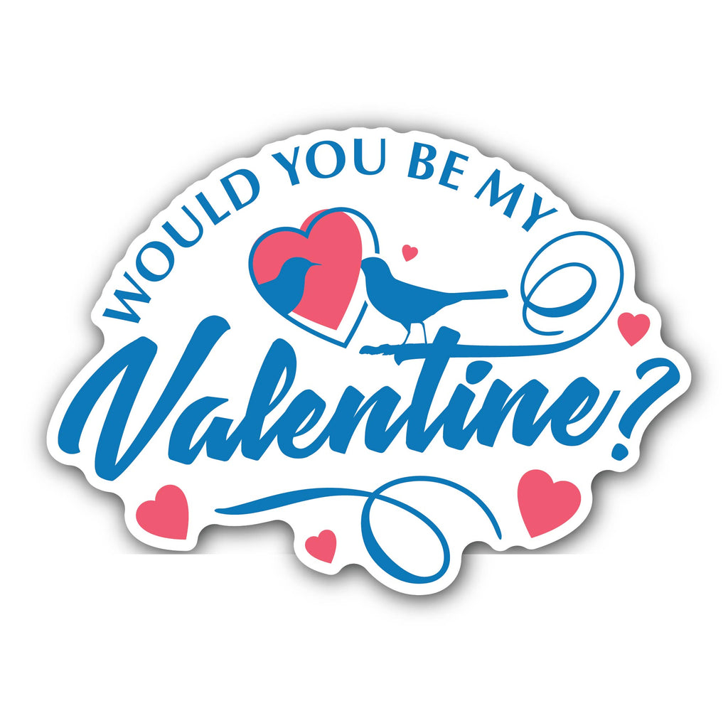 - SIZE MATTERS: Each decal measures approximately 5 inches and 3 inches (2) Pieces- 3 inches and 5 inches. Blue Color Would You Be My Valentine Text Sticker DESIGN: This vinyl decal features a design perfect for customizing vehicles, trucks, laptops, windows, computers, bottles, flasks, skateboards, phones, walls, glass, RVs, boats, and more with a patriotic flair.