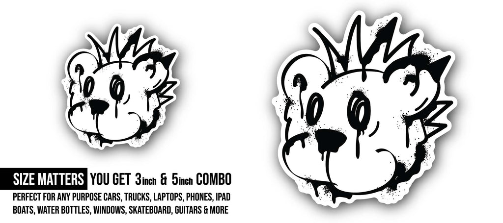 2 (Pieces) 3" and 5" Sad Bear Sticker, Waterproof Vinyl Decals for Many Purpose Like Cars, Trucks, Laptops, Phones, Windows and More