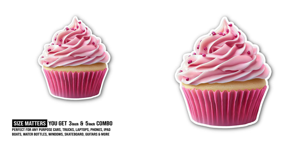 2 (Pieces) 3" and 5" cupcake with Pink frosting Sticker, Waterproof Vinyl Decals for Many Purpose Like Cars, Trucks, Laptops, Phones, Windows and More