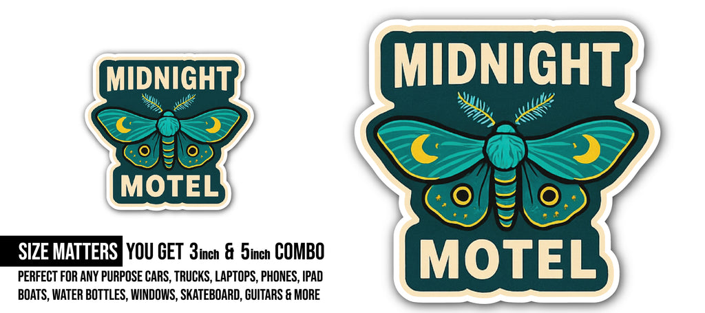 2 (Pieces) 3" and 5" Midnight Motel Sticker, Waterproof Vinyl Decals for Many Purpose Like Cars, Trucks, Laptops, Phones, Windows and More