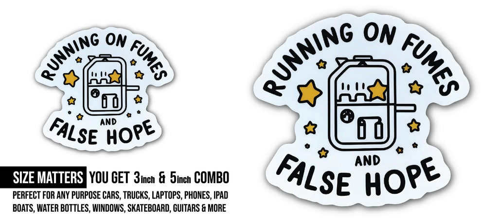 2 (Pieces) 3" and 5" Running on Fumes and False Hope Sticker, Waterproof Vinyl Decals for Many Purpose Like Cars, Trucks, Laptops, Phones, Windows and More