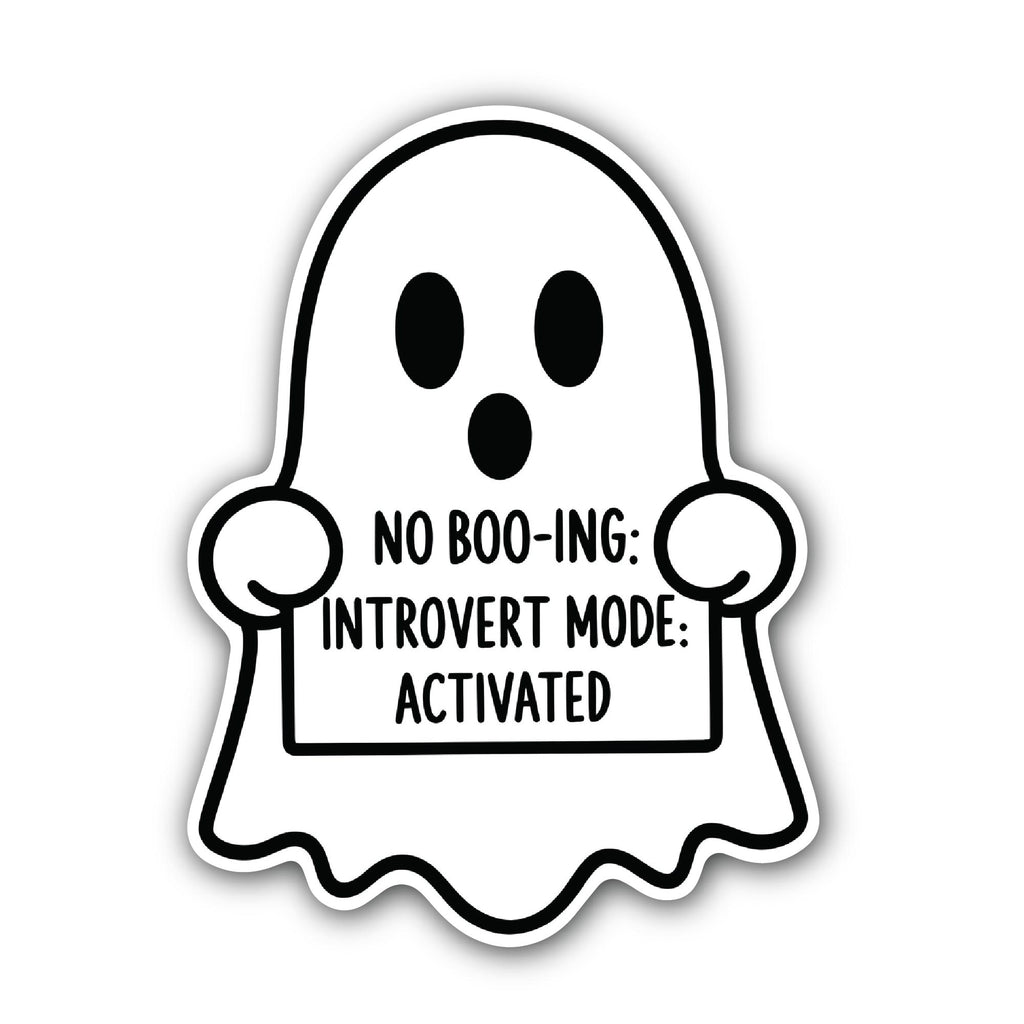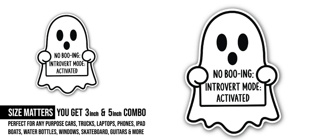 2 (Pieces) 3" and 5" No Boo-ing. Activated Introvert Mode Ghost Sticker, Waterproof Vinyl Decals for Many Purpose Like Cars, Trucks, Laptops, Phones, Windows and More