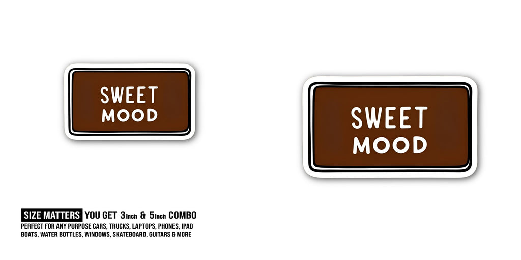 2 (Pieces) 3" and 5" SWEET MOOD Sticker, Waterproof Vinyl Decals for Many Purpose Like Cars, Trucks, Laptops, Phones, Windows and More