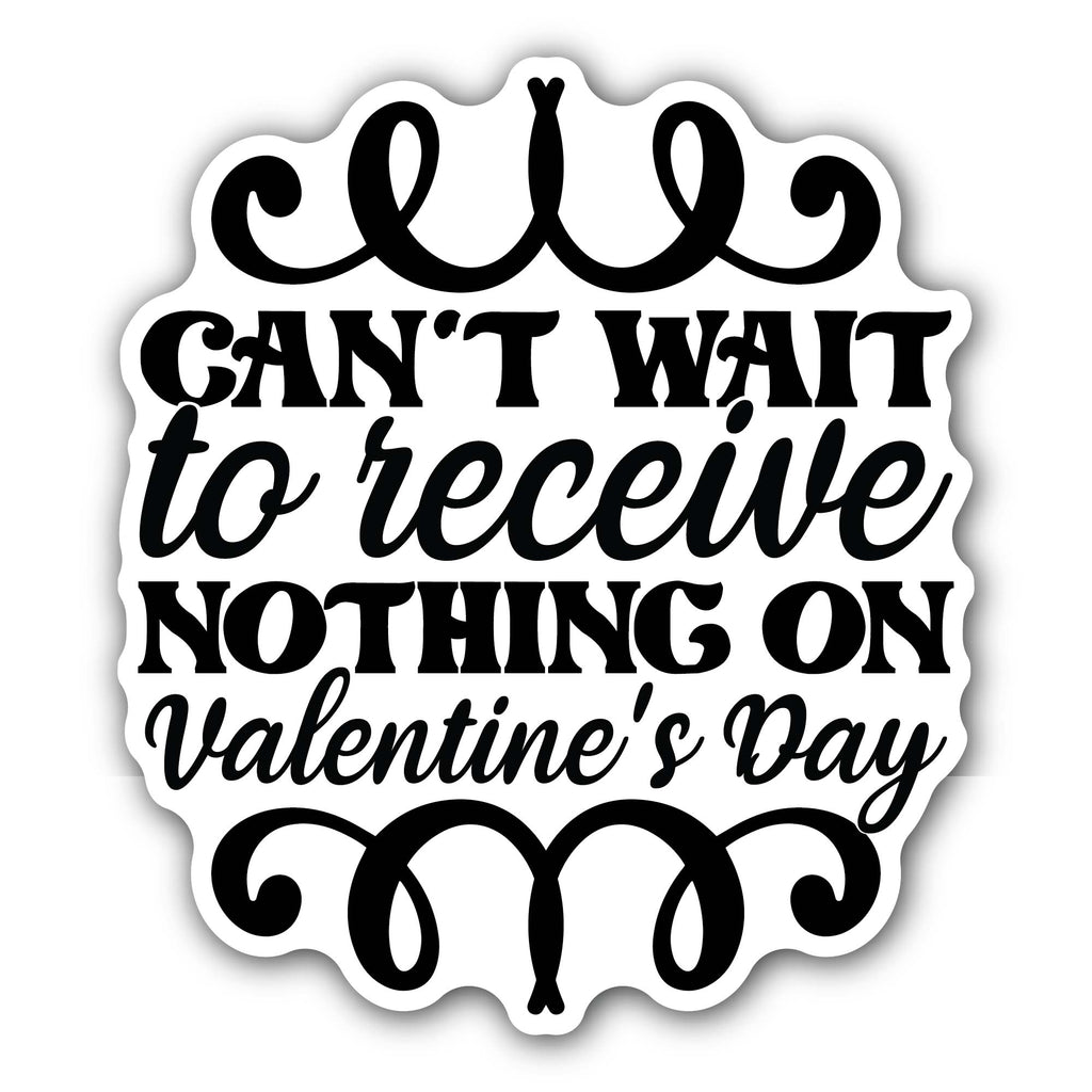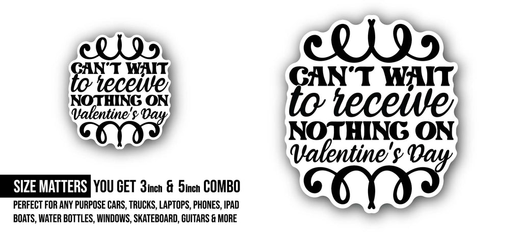 - SIZE MATTERS: Each decal measures approximately 5 inches and 3 inches (2) Pieces- 3 inches and 5 inches. Black Color Can't Wait to Receive Nothing On Valentine's Day Text Sticker DESIGN: This vinyl decal features a design perfect for customizing vehicles, trucks, laptops, windows, computers, bottles, flasks, skateboards, phones, walls, glass, RVs, boats, and more with a patriotic flair.