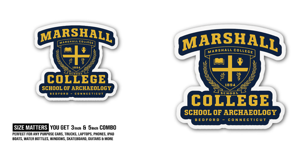 - SIZE MATTERS: Each decal measures approximately 5 inches and 3 inches (2) Pieces- 3 inches and 5 inches. Marshall College Sticker DESIGN: This vinyl decal features a design perfect for customizing vehicles, trucks, laptops, windows, computers, bottles, flasks, skateboards, phones, walls, glass, RVs, boats, and more with a patriotic flair.