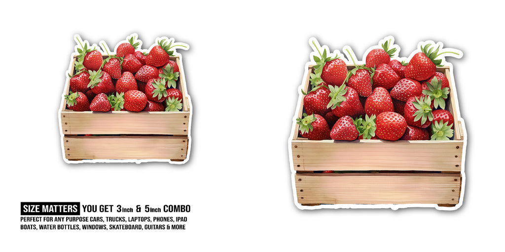 2 (Pieces) 3" and 5" Strawberries crate Sticker, Waterproof Vinyl Decals for Many Purpose Like Cars, Trucks, Laptops, Phones, Windows and More