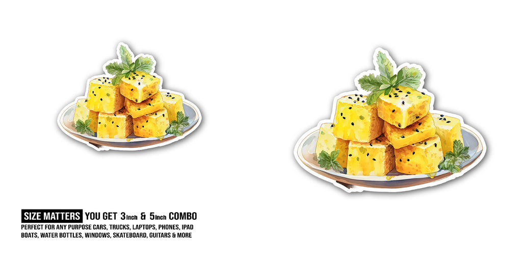 2 (Pieces) 3" and 5" Lemon Dhokla Sticker, Waterproof Vinyl Decals for Many Purpose Like Cars, Trucks, Laptops, Phones, Windows and More