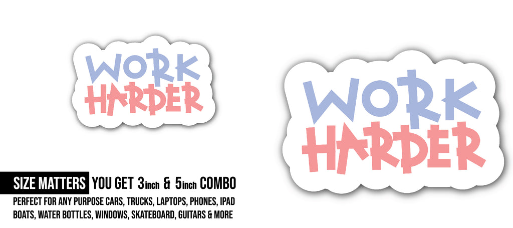 2 (Pieces) 3" and 5" Work Harder Sticker, Waterproof Vinyl Decals for Many Purpose Like Cars, Trucks, Laptops, Phones, Windows and More