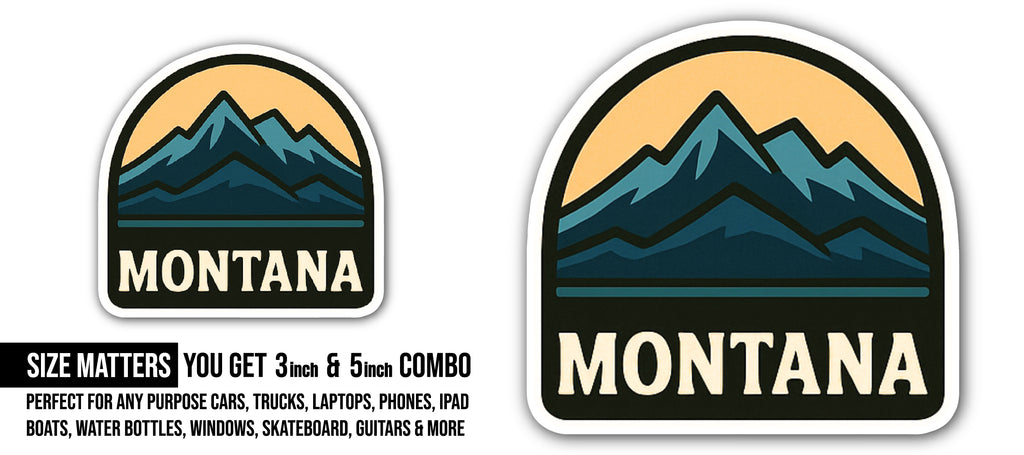 2 (Pieces) 3" and 5" Montana Sticker, Waterproof Vinyl Decals for Many Purpose Like Cars, Trucks, Laptops, Phones, Windows and More