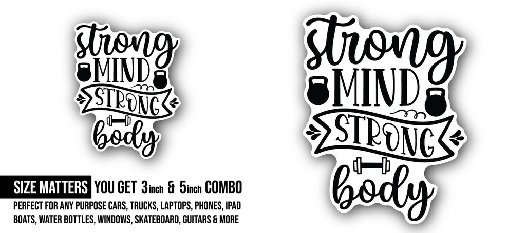 2 (Pieces) 3" and 5" Strong Mind Strong Body text Sticker, Waterproof Vinyl Decals for Many Purpose Like Cars, Trucks, Laptops, Phones, Windows and More