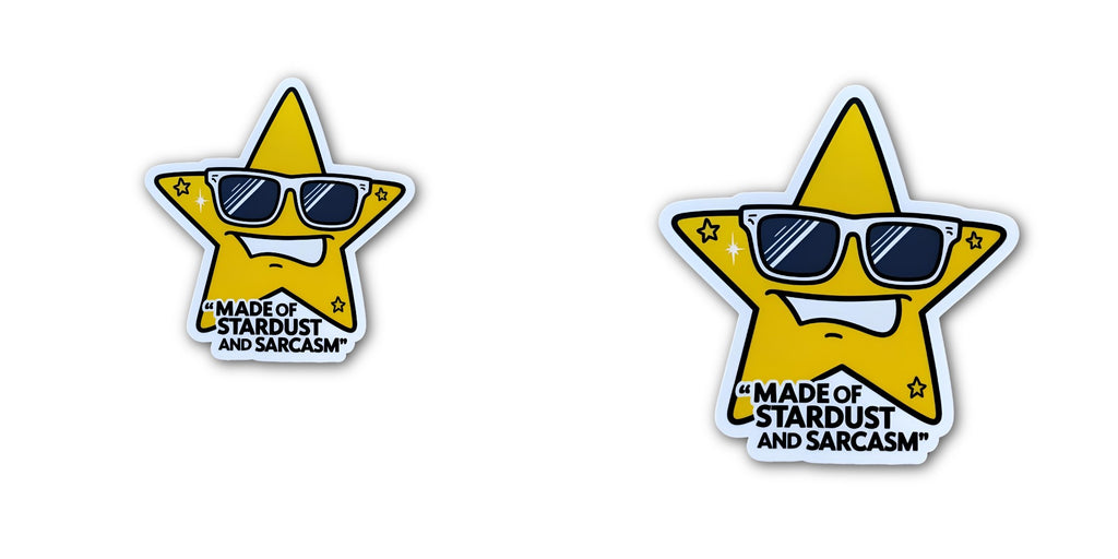 2 (Pieces) 3" and 5" MADE OF STARDUST AND SARCASM Sticker, Waterproof Vinyl Decals for Many Purpose Like Cars, Trucks, Laptops, Phones, Windows and More
