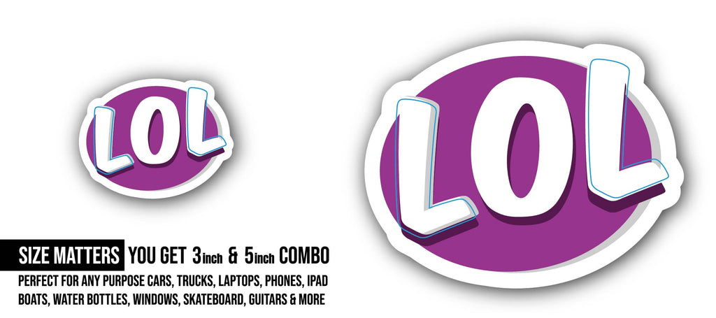 2 (Pieces) 3" and 5" LOL Message Sticker, Waterproof Vinyl Decals for Many Purpose Like Cars, Trucks, Laptops, Phones, Windows and More
