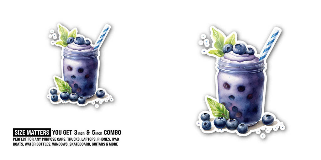 2 (Pieces) 3" and 5" A blueberry milkshake Sticker, Waterproof Vinyl Decals for Many Purpose Like Cars, Trucks, Laptops, Phones, Windows and More