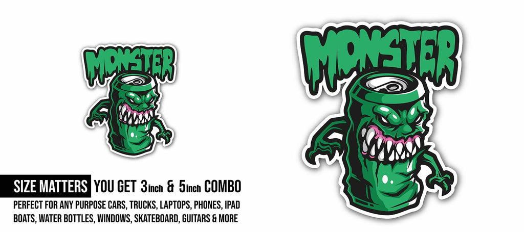 2 (Pieces) 3" and 5" Monster Tin Sticker, Waterproof Vinyl Decals for Many Purpose Like Cars, Trucks, Laptops, Phones, Windows and More