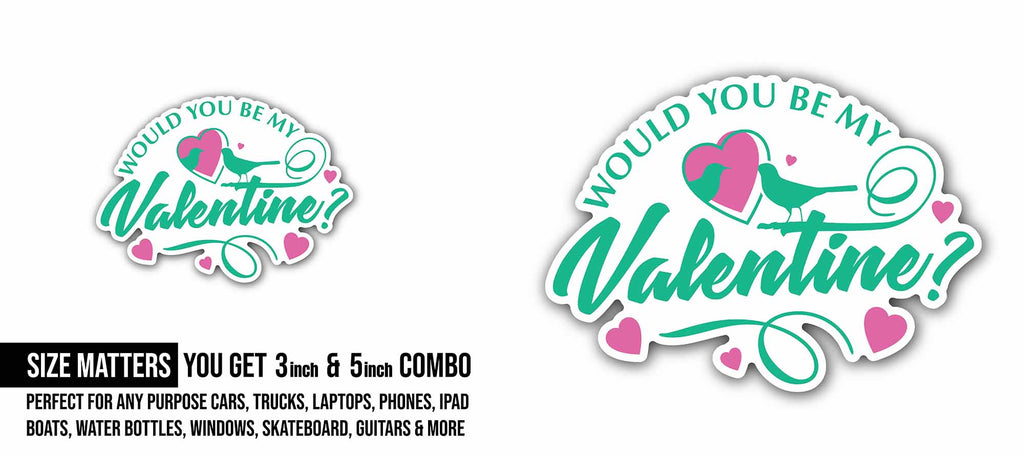- SIZE MATTERS: Each decal measures approximately 5 inches and 3 inches (2) Pieces- 3 inches and 5 inches. Birds & Heart with Valentine Sticker DESIGN: This vinyl decal features a design perfect for customizing vehicles, trucks, laptops, windows, computers, bottles, flasks, skateboards, phones, walls, glass, RVs, boats, and more with a patriotic flair.