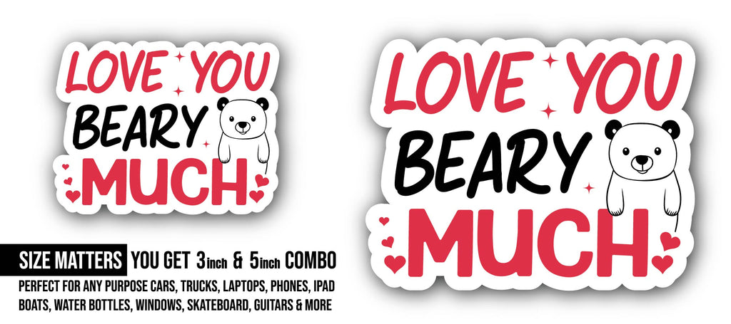 2 (Pieces) 3" and 5" Love You Beary Much Valentine Sticker, Waterproof Vinyl Decals for Many Purpose Like Cars, Trucks, Laptops, Phones, Windows and More