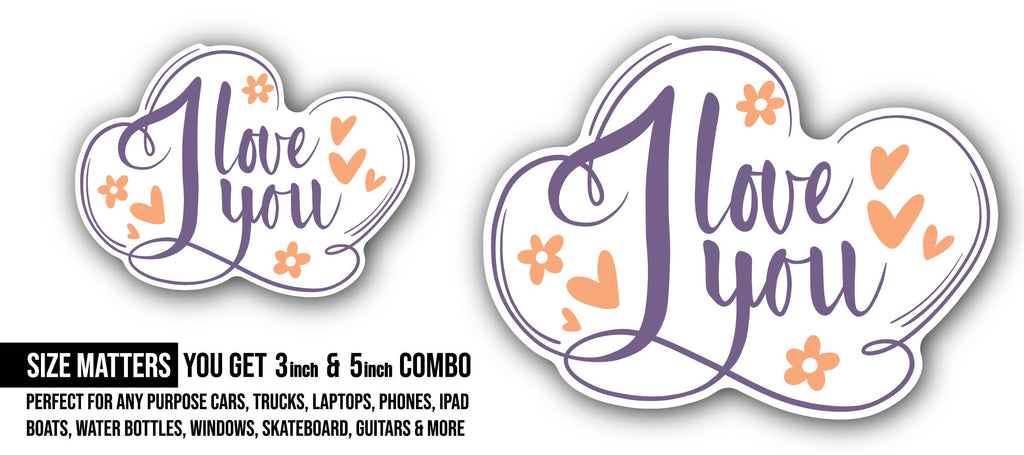 2 (Pieces) 3" and 5" I Love You Message Sticker, Waterproof Vinyl Decals for Many Purpose Like Cars, Trucks, Laptops, Phones, Windows and More