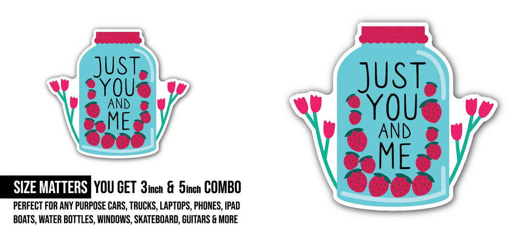 2 (Pieces) 3" and 5" Just You and Me with Strawberry in Jar Sticker, Waterproof Vinyl Decals for Many Purpose Like Cars, Trucks, Laptops, Phones, Windows and More