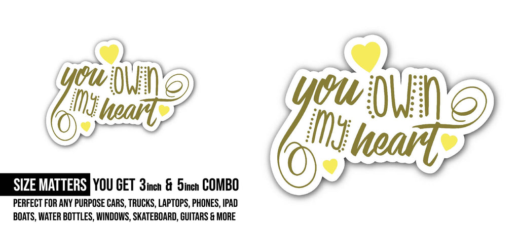 2 (Pieces) 3" and 5"You Own My Hart Sticker, Waterproof Vinyl Decals for Many Purpose Like Cars, Trucks, Laptops, Phones, Windows and More